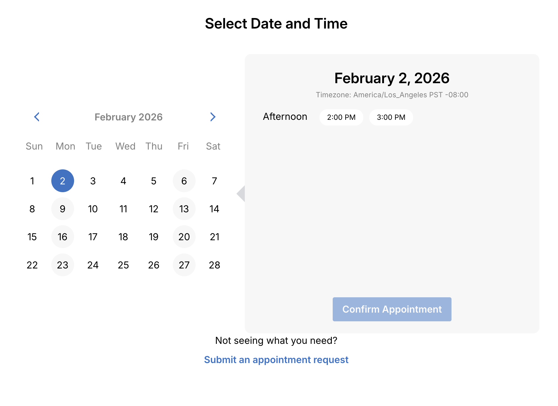 Choose a date and time that fits your schedule. All appointments are held virtually, so you can join from the comfort of your home.